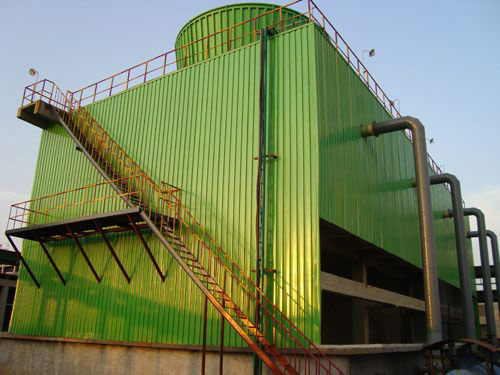冷卻塔的適用范圍:  工業(yè)生產(chǎn)或制冷工藝過程中產(chǎn)生的廢熱,一般要用冷卻水來導(dǎo)走。冷卻塔的作用是將挾帶廢熱的冷卻水在塔內(nèi)與空氣進(jìn)行熱交換,使廢熱傳輸給空氣并散入大氣中。例如:火電廠內(nèi),鍋爐將水加熱成高溫高壓蒸汽,推動汽輪機(jī)做功使發(fā)電機(jī)發(fā)電,經(jīng)汽輪機(jī)作功后的廢汽排入冷凝器,與冷卻水進(jìn)行熱交換凝結(jié)成水,再用水泵打回鍋爐循環(huán)使用。這一過程中蒸汽的廢熱傳給了冷卻水,使水溫度升高,挾帶廢熱的冷卻水,在冷卻塔中將熱量傳遞給空氣,從風(fēng)筒處排入大氣環(huán)境中。冷卻塔應(yīng)用范圍:主要應(yīng)用于空調(diào)冷卻系統(tǒng)、冷凍系列、注塑、制革、發(fā)泡、發(fā)電、汽輪機(jī)、鋁型材加工、空壓機(jī)、工業(yè)水冷卻等領(lǐng)域,應(yīng)用為空調(diào)冷卻、冷凍、塑膠化工行業(yè)。